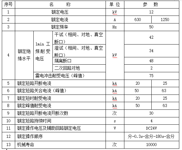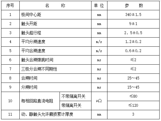4.1 斷路器主要技術(shù)參數(shù),見表1。